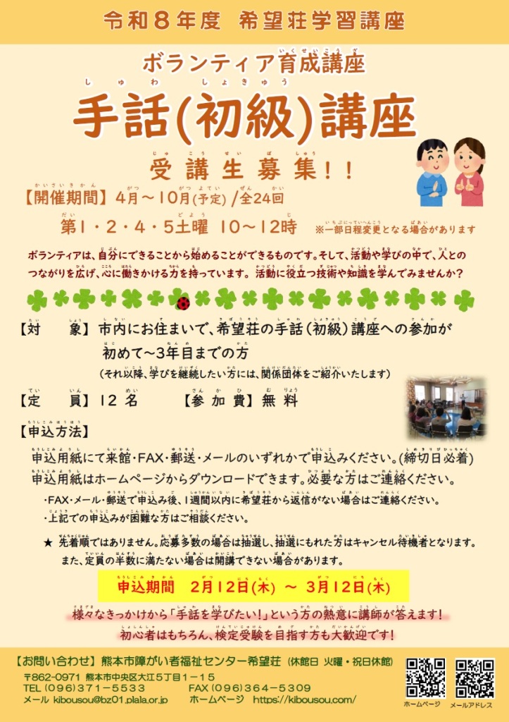 「令和8年度 希望荘学習講座」受講生を募集いたします!