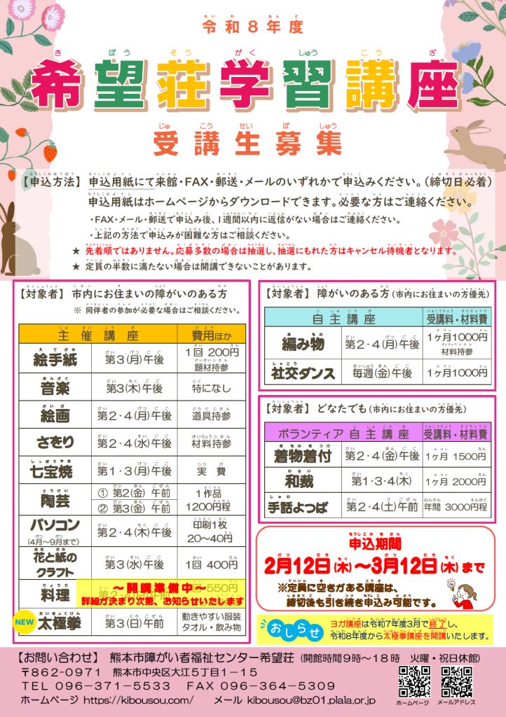 【申込期間】 2月12日(木)~3月12日(木)まで