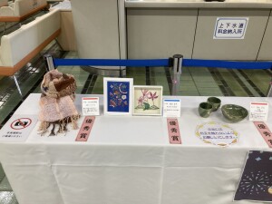 希望荘作品展2025で個人作品「最優秀賞」「優秀賞」に選ばれた方々の作品を、熊本市役所の1階ロビーにて展示を行っています。
